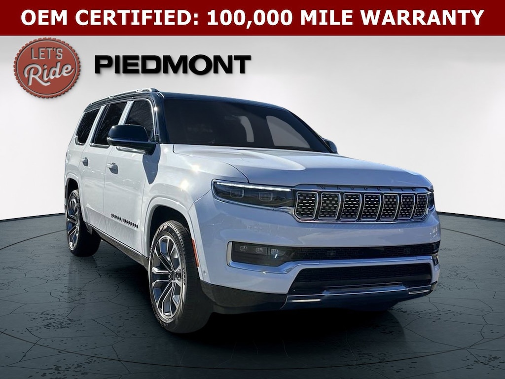 Look at this 2024 Jeep Grand Wagoneer Series III 4x4. Its Automatic transmission and Twin Turbo Premium Unleaded I-6 3.0 L/183 engine will keep you going. This Jeep Grand Wagoneer features the following options: TWO TONE PAINT GROUP, TRANSMISSION: 8-SPEED AUTOMATIC (8HP75) (STD), ENGINE: 3.0L I6 HURRICANE HO TWIN TURBO ESS (STD), BRIGHT WHITE CLEARCOAT, BLACK CLEARCOAT, Wireless Phone Connectivity, Wagoneer Connect Emergency Sos Capability, Voice Activated Dual Zone Front And Rear Automatic Air Conditioning, Valet Function, and Trunk/Hatch Auto-Latch. Stop by and visit us at Piedmont CDJR Honda, 4011 Clemson Blvd, Anderson, SC 29621.
