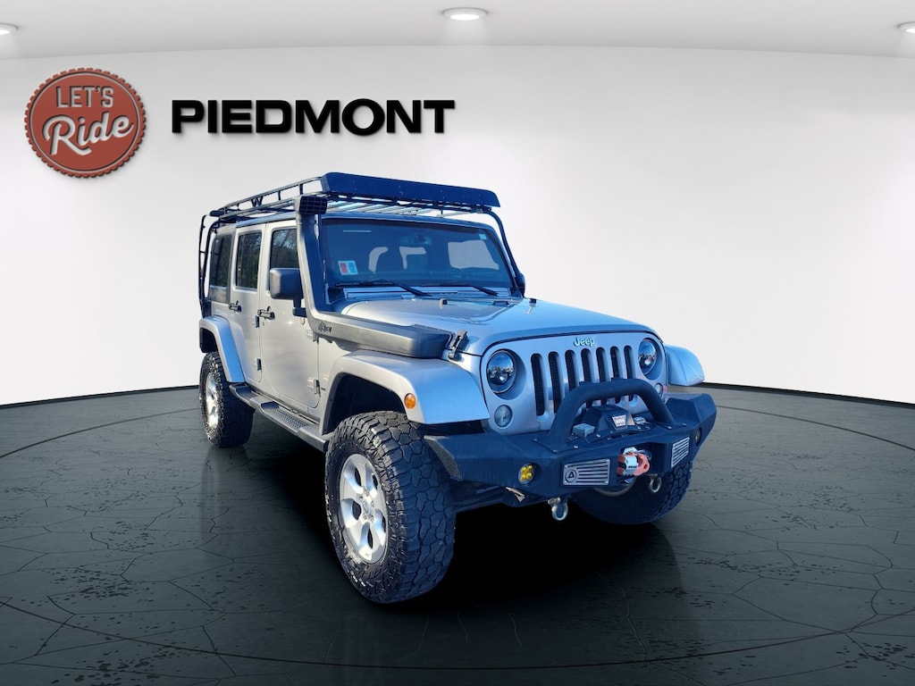 Come see this 2014 Jeep Wrangler Unlimited 4WD 4dr Sahara. Its Automatic transmission and Regular Unleaded V-6 3.6 L/220 engine will keep you going. This Jeep Wrangler Unlimited has the following options: WHEELS: 18" X 7.5" POLISHED SATIN CARBON (STD), TRANSMISSION: 5-SPEED AUTOMATIC (W5A580) -inc: Tip Start, Hill Descent Control, TRAILER TOW GROUP -inc: Class II Receiver Hitch, Trailer Tow w/4-Pin Connector Wiring, RADIO: UCONNECT 430N CD/DVD/MP3/HDD/NAV -inc: 1-Year SIRIUSXM Travel Link Service, 6.5" Touch Screen Display, Remote USB Port, 40GB Hard Drive w/28GB Available, GPS Navigation, SiriusXM Travel Link, QUICK ORDER PACKAGE 24G -inc: Engine: 3.6L V6 24V VVT, Transmission: 5-Speed Automatic (W5A580), ENGINE: 3.6L V6 24V VVT (STD), CONNECTIVITY GROUP -inc: Vehicle Information Center, Tire Pressure Monitoring Display, BLACK, CLOTH BUCKET SEATS -inc: adjustable head restraints, BLACK 3-PIECE HARD TOP -inc: If ordering without AEM (Dual Top Group), the black soft top will not be included, Freedom Panel Storage Bag, Rear Window Defroster, Rear Window Wiper/Washer, Delete Sunrider Soft Top, and BILLET METALLIC CLEARCOAT. See it for yourself at Piedmont CDJR Honda, 4011 Clemson Blvd, Anderson, SC 29621.